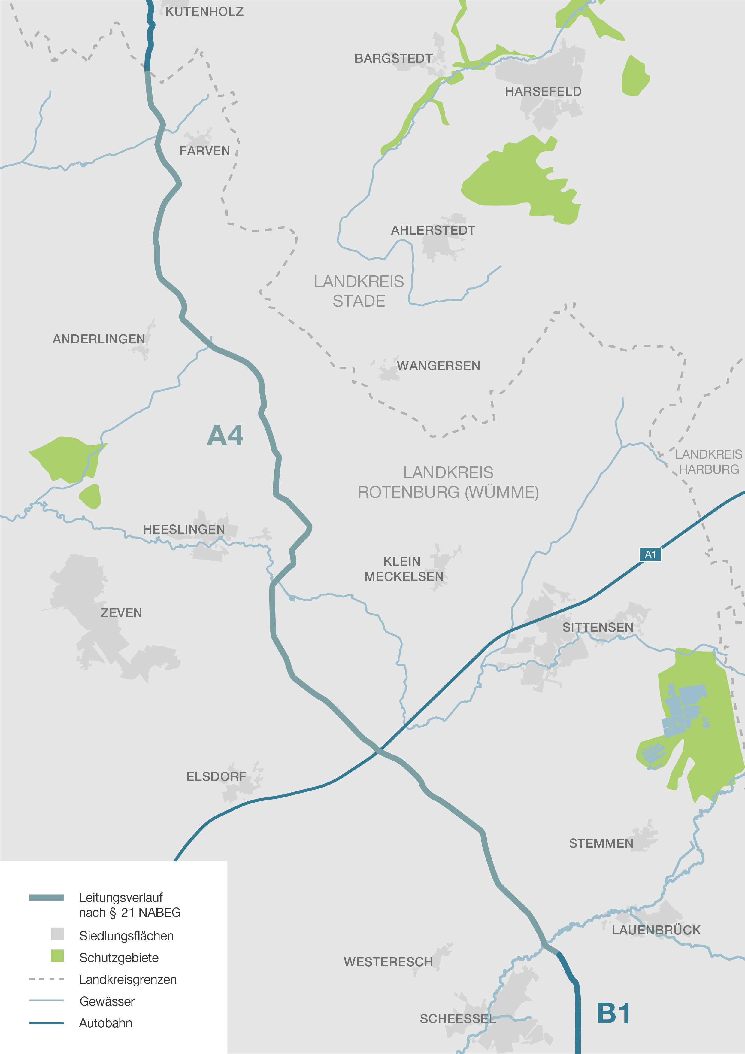Der Planfeststellungsbeschluss zu der geplanten SuedLink-Trasse wurde am 08.04.2024 bekannt gemacht. Somit können die Bauarbeiten zur SuedLink-Trasse beginnen. Der Planfeststellungsabschnitt A4 reicht von der Landkreisgrenze Stade / Rotenburg bis nach Helvesiek/Scheeßel. Die bauvorbereitenden Maßnahmen, sowie drei Bohrungen im Horizontalspülverfahren (HDD-Bohrungen) und der Bau eines Mikrotunnels für Versorgungsleitungen laufen seit dem 02.04.2024 im Bereich westlich von Weertzen. Danach weiten sich bis Juni 2025 die Bauarbeiten Richtung Norden bis an die Landkreisgrenze Stade/Rotenburg aus. Bis Juli 2025 sollen die Bauarbeiten Richtung Helvesiek/Scheeßel stattfinden. Der Bescheid über den Planfeststellungsbeschluss ist auf der Seite der Bundesnetzagentur hier abrufbar.
