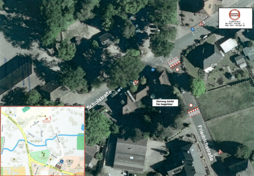 Vom 24.10.2025 bis voraussichtlich 07.11.2025 wird die Friedrichstraße in Höhe Einmündung Schulstraße in beiden Richtungen zur Durchfahrt voll gesperrt. Grund hierfür sind Kabelverlegungsarbeiten. Die Gehwege bleiben für Fußgänger und Radfahrer frei.